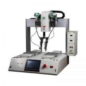 由多臺在線式焊錫機組合的工作站:
