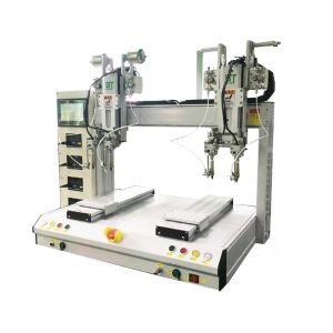 該設備由1臺雙頭自動焊錫機和兩個翻轉(zhuǎn)機構(gòu)及三個移載機構(gòu)組合而成的自動化焊錫工作站,可以根據(jù)需要設置相應的設備工位,可改變產(chǎn)品的軌道傳送方向,可對產(chǎn)品進行任何角度的旋轉(zhuǎn),適合對產(chǎn)品不同方向進行焊接,從而大大提升了產(chǎn)能,其還可銜接方向不同、高低不同的傳送軌道,靈活組合,節(jié)約占地空間,有利于工業(yè)自動化發(fā)展,成本低,效率高,通用性強。